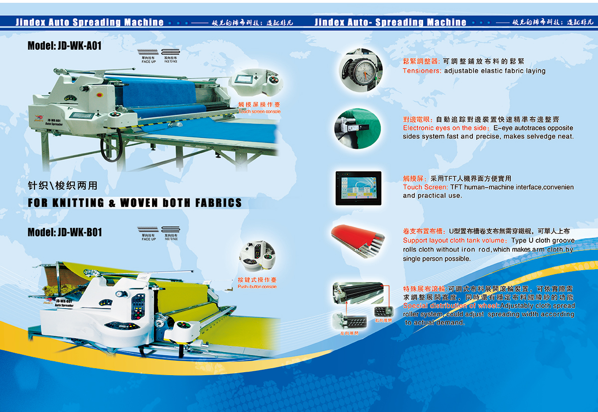 - Elastic adjuster: Adjusts the tightness of the laid fabric; Opposite side of the eye: Automatic tracking of the edge device quickly and accurately tidy; Rolling and arranging cloth groove: U-shaped cloth grooved cloth does not need to wear iron bars, and can be clothed by a single person; Special sp