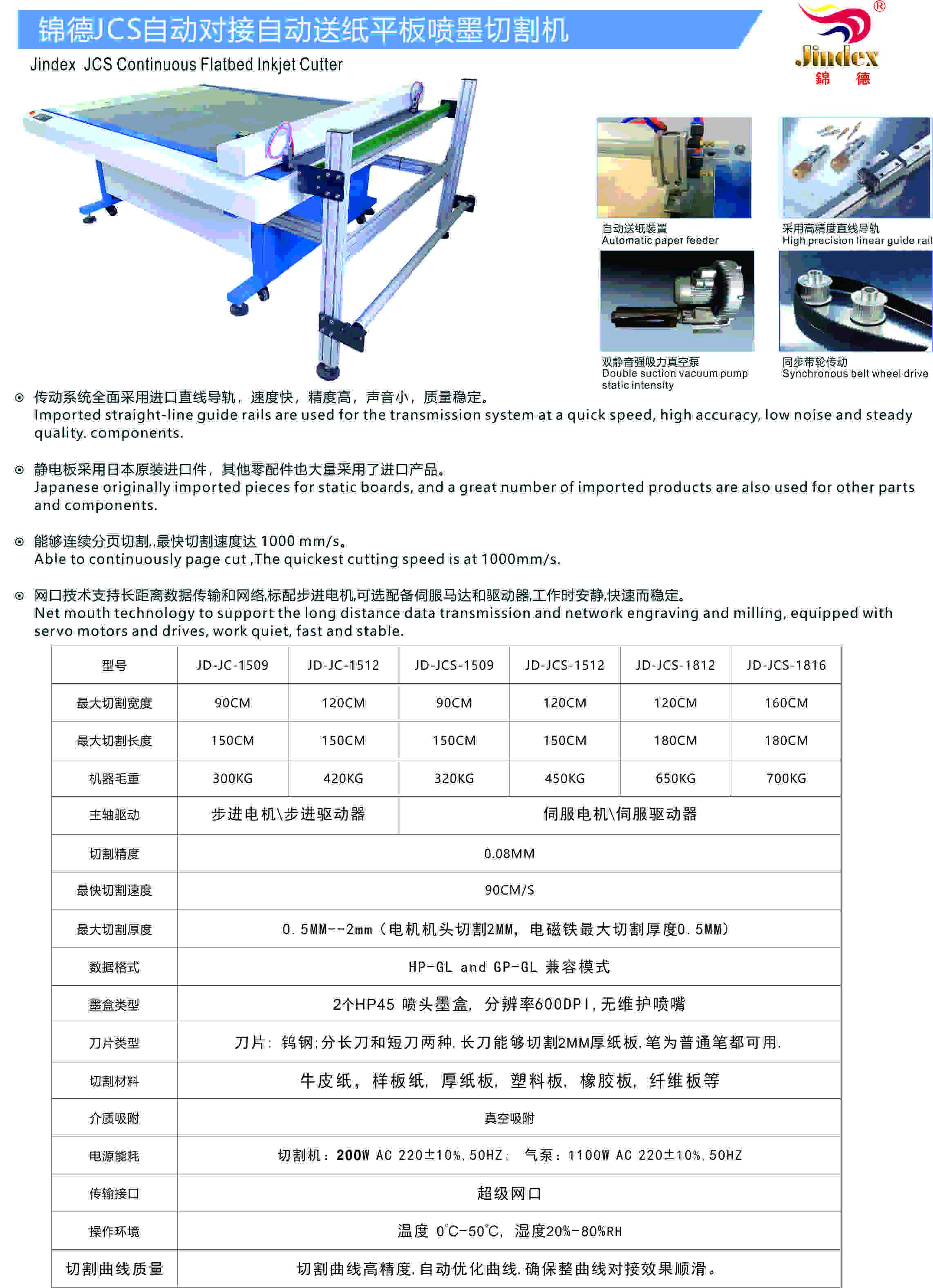 錦德JCS自動(dòng)對(duì)接自動(dòng)送紙平板噴墨切割機(jī)
